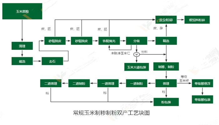 ①精糝:物料破碎成糝,把硬度較小胚乳(白點)打細成粉;